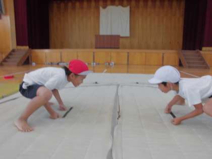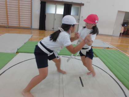 あいさつをして,相手の目をみて,土俵にかまえる姿は日に日にさまになってきました!