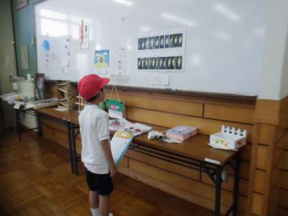 作品展でいろいろな作品を鑑賞しました。自分の作品だけでなく,友だちの作品をまじまじと眺め,素敵な作品に思わず手がでそうになりながらも,さわりたい気持ちをぐっと我慢して,しっかり鑑賞することができました。
