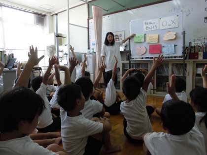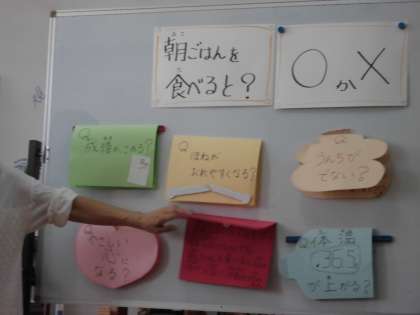 身体計測の前に,養護教諭から朝ごはんの大切さを教えていただきました。