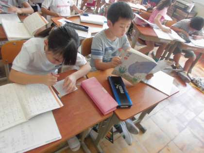 「スタート」の合図で,子ども達は教科書を開け,夢中で漢字を集めていました!!