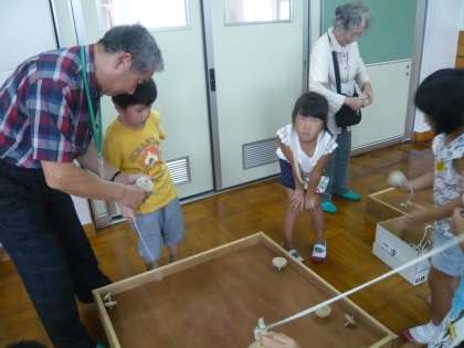 なぬか会の遊びのコーナーは「竹返し」「トントンずもう」「こままわし」「けん玉」「ヨーヨー」「めんこ」「あやとり」「坊主めくり」「お手玉」がありました。