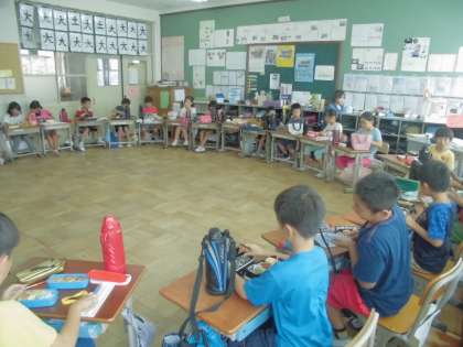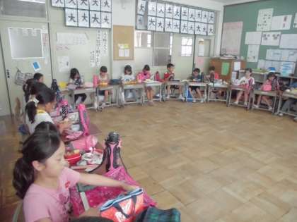 と休み時間に報告する子ども達。