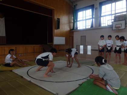 また相撲のけいこづけに参加していた児童を中心に中学生から教えてもらったことをみんなに伝えることができていてよかったですね。いよいよ今週の日曜日大原野奉納相撲です。気合十分。頑張れ5年生。