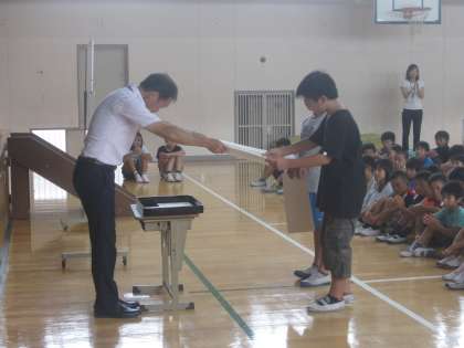 準優勝した5年生,3位になった6年生に賞状を渡しました。