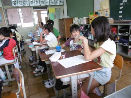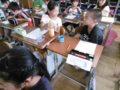 その後,「あまあま星人」の紙芝居を聞いたり実際に500mlのジュースに入っている糖分を計算したりしました。