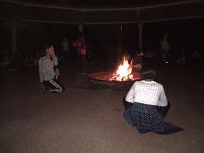 いよいよみんなが待っていたキャンプファイヤーです。各班からの出し物で盛り上がり,山の家最後の夜を楽しんでいました。