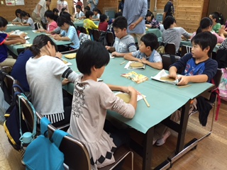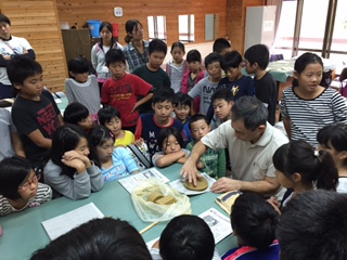 午前中に,陶芸「花脊焼」に挑戦しました。師匠の力強い説明のあと,取りかかりました。みんな思い思いの作品ができました。できたものは窯で焼いてもらったあと,後日学校まで届けてくださいます。楽しみですね。