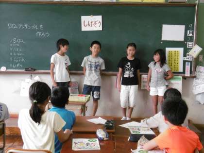 音楽の時間に「言葉でリズムアンサンブル」の