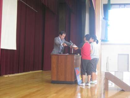 まず,京都市小学生アイデア展に入選した人に賞状を渡しました。