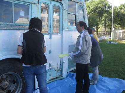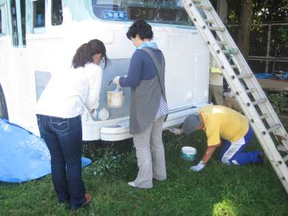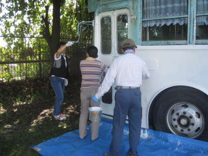 ローラーやはけを片手にみんなで塗り始めました。