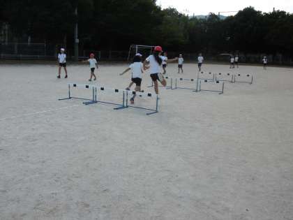 ねらい1,ねらい2を行った後は,50mハードルのタイムを測りました。