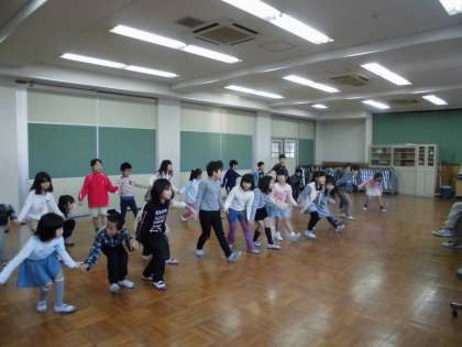 今日はダンスの練習。踊りが大好きな2年生。踊りが入ることを知って大喜び。演じて,歌って踊って楽しみます。