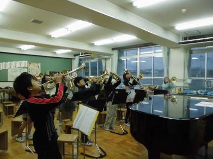鼓笛まつりの次は,フェスタ大原野『こもれびコンサート』です。鼓笛まつりで自信をつけ,力を付けた子どもたち。ベルアクションも様になってきました。