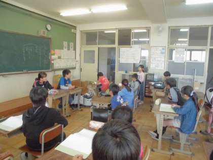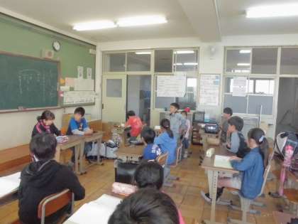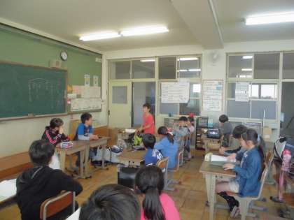 高学年の人たちと交流し合う初めての会議に緊張気味の子ども達でしたが,自己紹介の順が回ってくると,相手を見て大きな声ではっきりと個々の抱負を言いました。