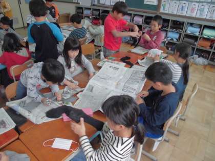 「学芸会の衣装作り」で、今日は「しっぽ」を作りました。
