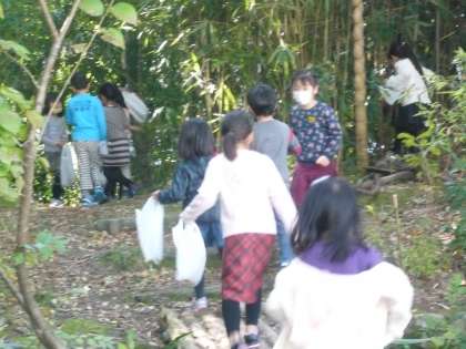 生活の勉強で「いのちの森」に行って秋見つけをしました。