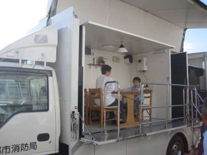 起震車では,地震の体験です。