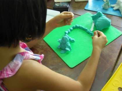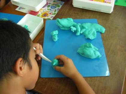 ねん土の感触も楽しみながら,いろんな動物をつくっていました。