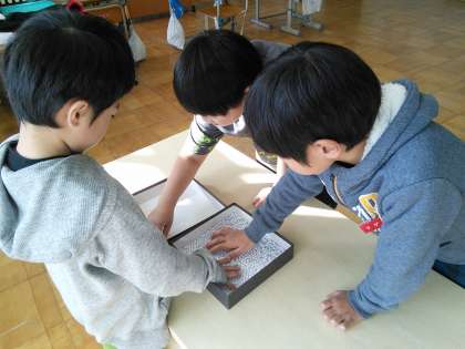 算数の時間,『1000までの数』を学習しています。「ビーズはいったいいくつあるのでしょう?」という問題をみんなで考えました。「めっちゃあるやん!」「1000個くらい?」「いや,もっとあるやろ。」など,いろいろ話していましたが,いざ数える時になると,「10個ずつ数えていこう!」と協力して数えていきました。いったいいくつあるのでしょうか???
