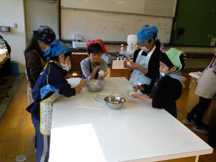 3年生で五平餅を作りました。3くみはみんな3年生なので,それぞれ交流学級で作りました。みんなで一緒にお米をつぶして,かためて,棒に巻きつけて…きれいな形に仕上げることができました。あとは,いろりの間で炭火で焼いて…お米を育ててくださったみなさんに感謝して,おいしくいただくことができました。