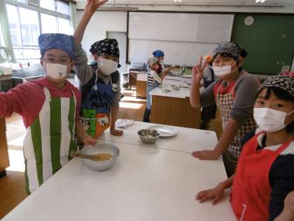 五平餅歴3年目の4年生は,慣れた手つきでもち米を握って割りばしに刺していき,早く終わった人は後片付けをテキパキと行っていきました。みさきの家で学んだことが生かされているなと担任は嬉しくなりました。