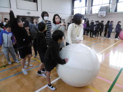 1時間という短い間だったのですが,キャタピラレースと大玉ころがしを子ども達は勿論のこと,保護者の方たちも真剣に,楽しく競技をすることができました。