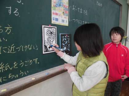 版画の次はカッターナイフを使っての作品作りに挑戦です。