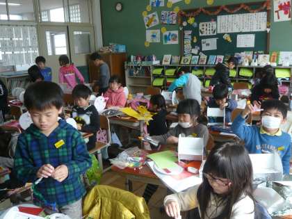 2月13日から作品展にむけて工作「コロコロゆらりん」を作っています。