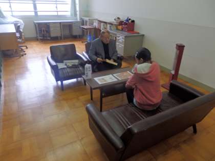 教員が人事課長など面接官になり,子ども達を見てもらいました。