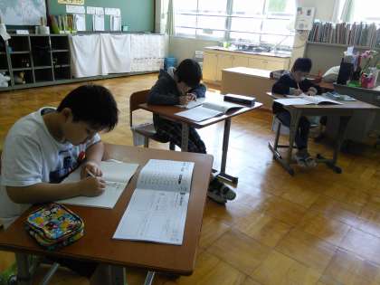 今年度,初めての算数の時間,新しいノートを開き,『スピード計算大会』を開催しました。ノートのどこに書くのか,約束事を決めて,「よーいスタート!」の合図とともに問題を解いていきました。