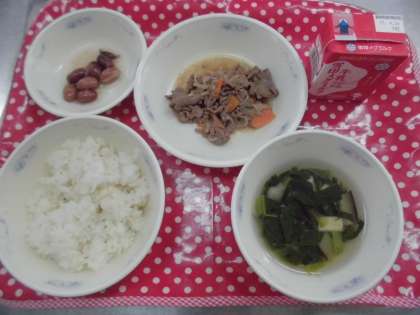 今年度,給食が始まって2回目の給食でした。1回目は入学お祝い献立の「スパゲティのミートソース煮」で子どもたちの大すきなメニューだったので,ほとんど残菜はありませんでした。2回目は,「ごはん・牛乳・牛肉のしぐれ煮・金時豆の甘煮・すましじる」と日本型の一汁二菜の献立でした。新3,新5年生は昨年よりごはんも増えているので,食べきれるかなあと心配していたのですが,だいたい食べてきてくれていたのでほっとしました。