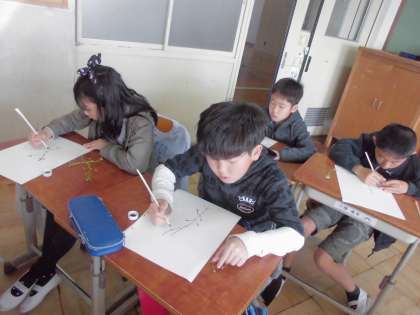「ぐんぐん 伸びるぞ!どこまでも!雨にも負けず 風にも負けず!雑草魂」個々の素晴らしい「魂の表現」に感動しました。出来上がった作品を飾りながら,「上手だなぁ。」「この気持ち、すごくいい!」と一人ぶつぶつとつぶやいてしまいました。子ども達の可能性に心が躍る瞬間でした。