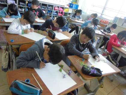 5年生、第1時の図工は「野草を描こう」です。