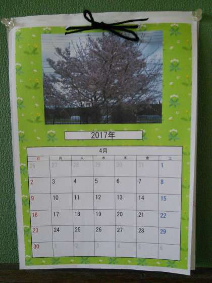 今年度も3くみは『カレンダープレゼント』に取り組みます。自分たちで担当月を話し合い,4月担当の児童はさっそく「桜の木がいい!」と写真を撮りに行きました。写真だけでなく,カレンダーの背景もたんぽぽ模様です。お届けに行く時「春らしくたんぽぽにしました。」と元気に伝えることができました。