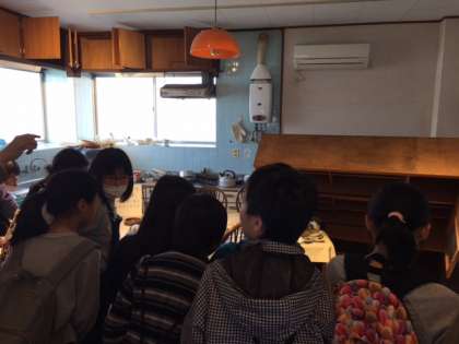 グループごとの見学では,台所の様子を当時のまま保存してある部屋に行きました。食器や棚が散乱していて,地震の恐ろしさを知りました。震度7クラスの揺れを体験するところでは,まったく立ち上がることさえできない自然の脅威を感じました。