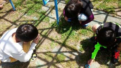 芝生やいのちの森で,いろんな生き物の観察ができました。