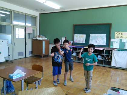 外国語活動の学習で,『Teddy Bear』を歌いました。はじめに,日本語の歌詞を聞いてどんなふりにするのか,みんなで決めました。次に歌を聞いて,みんなで決めたふりをその歌詞の通りに踊りました。そして,いよいよ英語の歌で踊ってみると,なんとよくわからなかった英語の歌の歌詞がわかった気分になりました!「ターンって聞こえたで。ターンはさわるや!」「シューは靴のことちがう?」など,いろいろな意見が聞こえてきました。とても楽しく学習することができました。