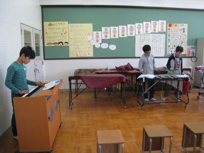 音楽で,『星空はいつも』という曲で合唱奏をしました。歌う人と鉄琴やエレクトーンの楽器を演奏する人に分かれて,歌声と音色を響かせ合いました。とても優しい音色でした♪