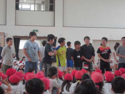 赤組も白組もとっても大きな応援の声が、体育館中に響き渡り、運動会本番が楽しみになりました!!