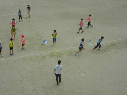 運動場での高学年のリレー練習が始まりました。今日は,それぞれのチームでバトンパスの練習です。スピードを落とさないよう,上手なバトンパスを目指しています!