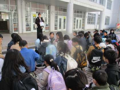 今日は、いつもより早めの昼食です。持参したお弁当を食べ、生き方探究館へ。みんな、元気よく出発しました。