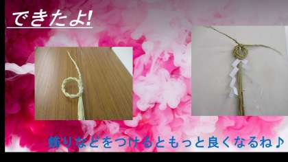 完成したしめ縄を手にした子どもたちのとても笑顔でした。今回の体験を通して、地域の方々とのつながりや、日本の伝統文化の大切さを改めて感じることができました。本当にありがとうございました。