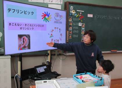 今日の3組の道徳では「デフリンピック」について学習しました。オリンピックやパラリンピックとの違いや、耳の不自由な方が、いろいろな競技を行い、そのために競技の中で多くの工夫がされていることなどを知って、興味をもっていました。最後に、実際に競技をしている動画を見て理解を深めました。