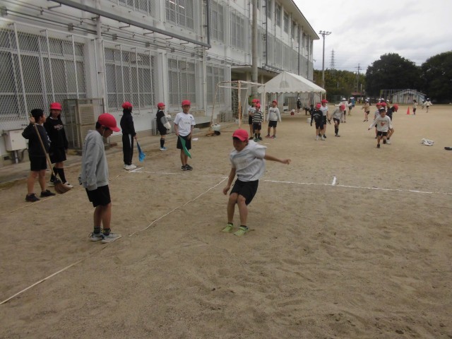 初めてやったにもかかわらず、ふみ切りも上手にできていたし、距離を読み取って記録したり、ほうきで砂をならしたりする係の仕事もとてもスムーズにできていて感心しました。