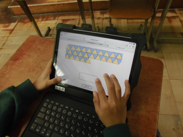 タブレットを使って、正三角形や二等辺三角形のしきつめをしました。