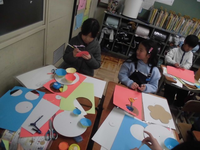 わりピンを使ってくるくる回る仕組みを生かした工作をしています。