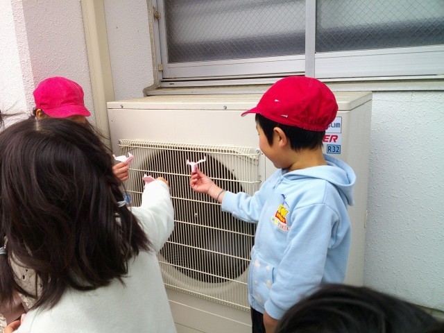 室外機の風を利用して飛ばそうとしている人たちもいて、寒い日でも風が吹くのを待っていた子どもたちでした。