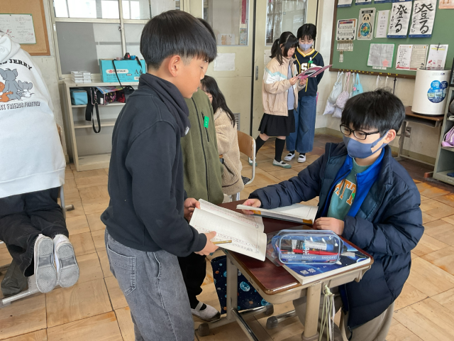 国語科~想像力のスイッチを入れよう~の学習では、インターネット上の様々な記事や情報に対して「これは本当の記事なのかな。」「他の考えはないのかな。」と全て信じてしまうのではなく、本当かどうか疑ったり、別の考えを想像したりすることも大事だと学習しました。学習して、自分はメディアをどのように使っているのか、これからどのように使っていきたいのか自分の考えを書きました。今日は交流会をしました。友だちの意見を聞くと、共感することや相違点にも気付けました。今や、子どもたちもテレビをはじめ、タブレットやスマホ、ゲーム機器を使うことが当たり前になっているように感じます。便利な面ももちろんありますが、インターネット上の情報をすぐに信じるのではなく、様々な考えをもって確かめながら正しい判断をもって接してほしいなと感じます。