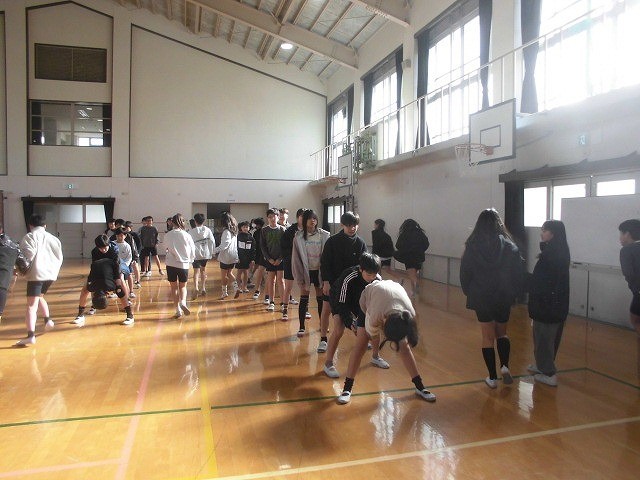 運動委員会主催のボール回しリレーに取り組みました。簡単なようで、なかなか難しくチームワークが求められます。
