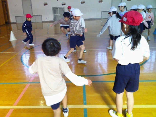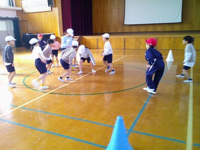 今日は、クラス対抗でゲームをしました。2回目ですが、転がすボールのスピードが速くなったり、来たボールをすぐに転がしたりしていたので、逃げる人たちが慌てている様子が見られました。得点も高くなり、ハラハラドキドキのゲームとなりました。